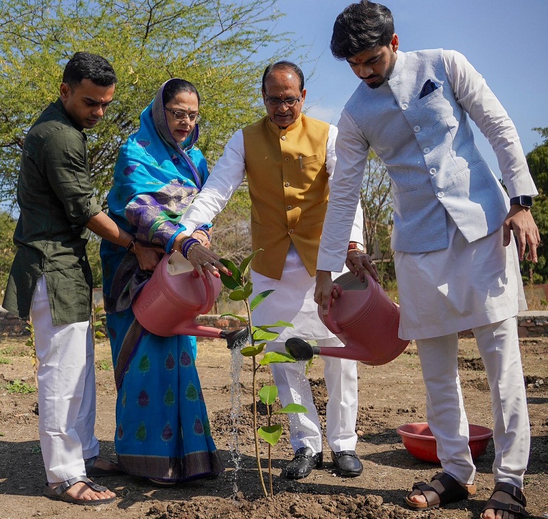भोपाल । केन्द्रीय कृषि एवं किसान कल्याण मंत्री शिवराज सिंह चौहान ने शनिवार सुबह प्रतिदिन पौधरोपण के संकल्प के क्रम में भोपाल स्थित स्मार्ट सिटी पार्क में अपने परिवार के साथ पौधरोपण किया। इस अवसर पर उन्होंने कहा कि हम सब मिलकर धरती को हरा-भरा व समृद्ध बनाएं, एक पौधा अवश्य लगाएं। पेड़-पौधे हमें जीवन देते हैं और हमारी धरती को हरा-भरा, सुंदर व समृद्ध बनाते हैं। आप भी विशिष्ट अवसरों पर पौधे अवश्य लगाएं।